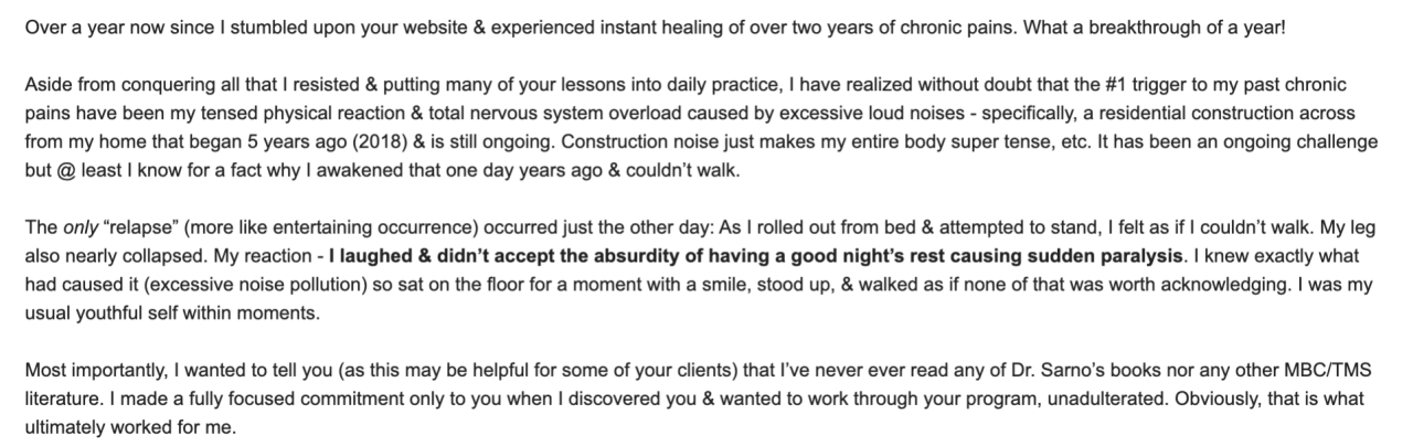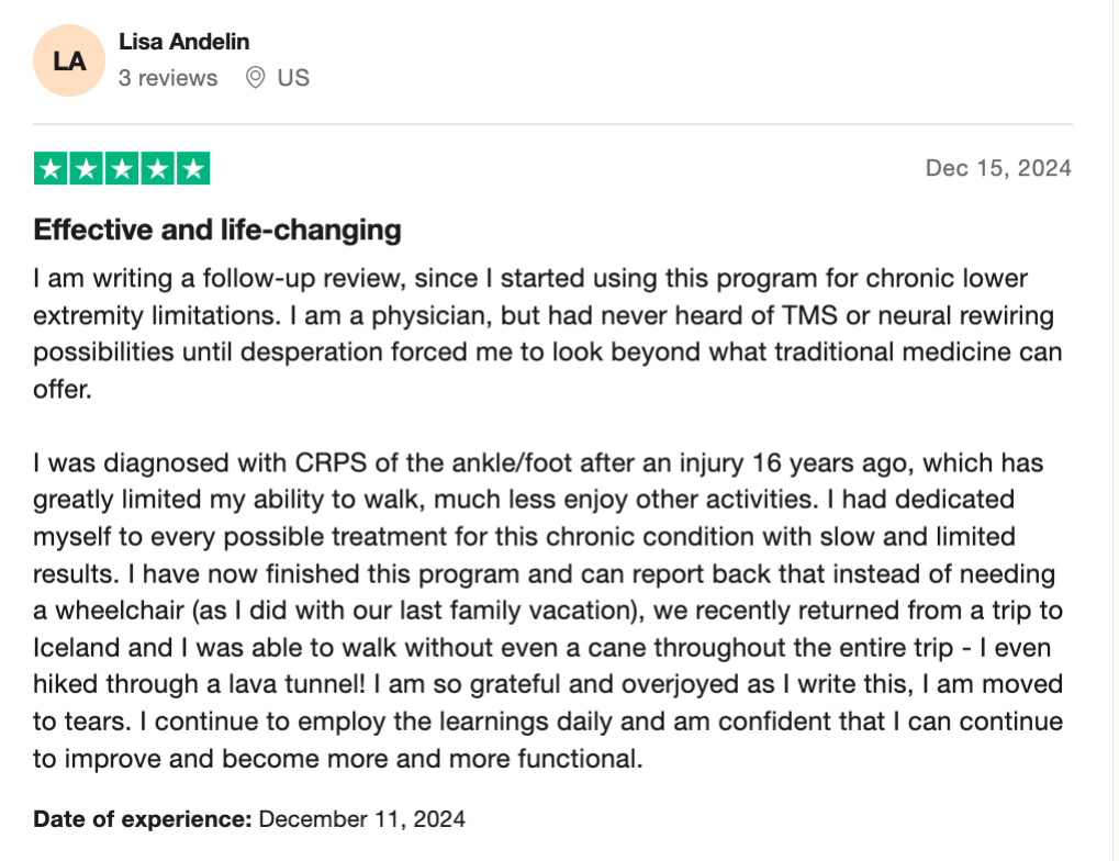 Disclaimer: The programs offered by PainOutsideTheBox are designed primarily to provide education, insight, and tools for personal growth and the enhancement of general wellbeing. The content is intended for informational purposes only and is not a substitute for professional medical advice, diagnosis, or treatment. These programs do not claim to diagnose, treat, cure, or prevent any medical or psychological condition. If you have, or suspect you may have, a health-related issue, you should seek the guidance of a qualified healthcare professional. PainOutsideTheBox focuses on a mindbody approach to addressing chronic pain associated with neuroplastic symptoms. The material provided is not intended to replace medications, therapies, or any form of professional medical care. Please note that some individuals may find certain exercises or topics emotionally or physically challenging. By participating in these programs, you acknowledge and accept full responsibility for your experience and agree not to hold PainOutsideTheBox liable for any adverse effects that may result from your participation.
